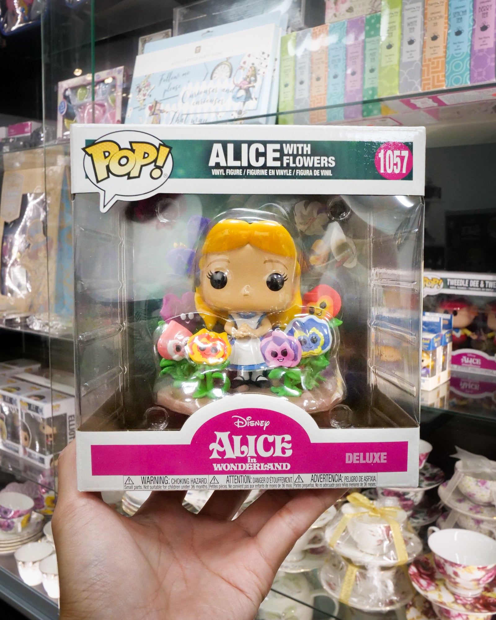 This Alice in Wonderland 70th Anniversary Alice with Flowers Deluxe Pop! Vinyl Figure features Alice surrounded by the beautiful singing flowers from her trip to Wonderland. Alice measures approximately 3 3/4-inches tall and comes on a deluxe base. Comes package in a window display box.