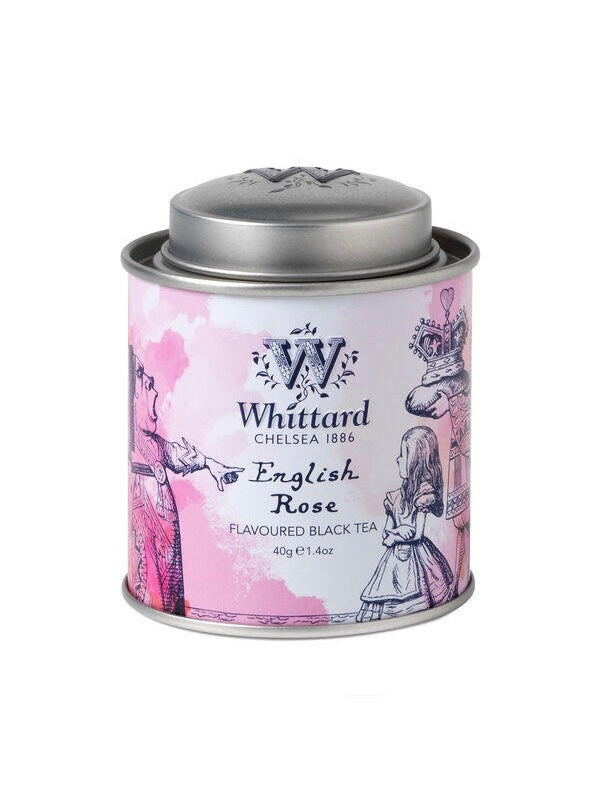 A rich, sweet loose leaf black tea, imbued with subtle floral flavours and scattered with rose petals – presented in a delightful Alice in Wonderland mini caddy.